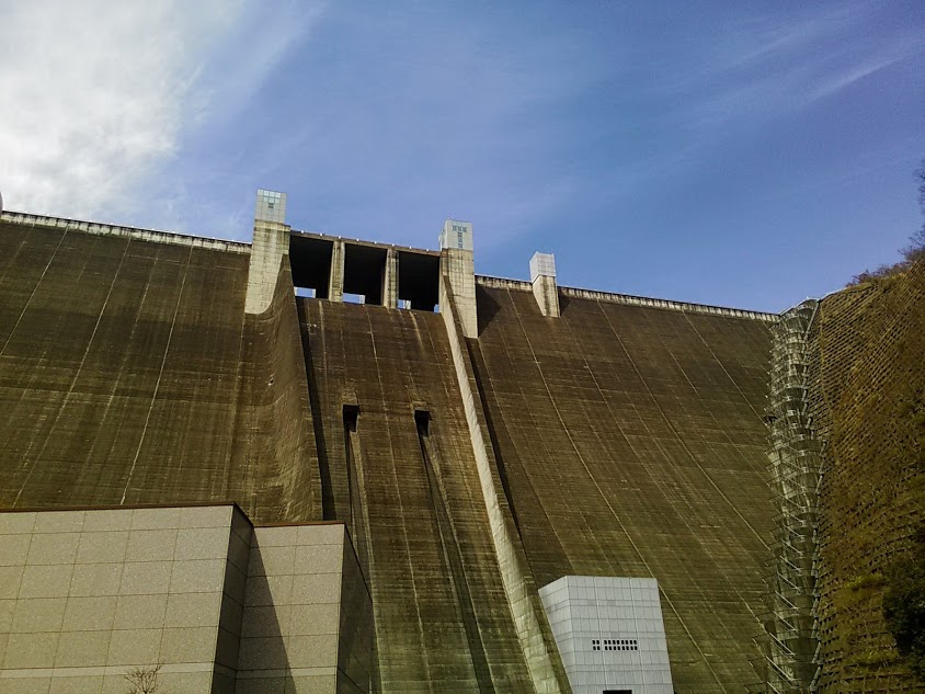 この堰堤の上下はこの裏ってにあるエレベーターか正面側にあるインクラインです。