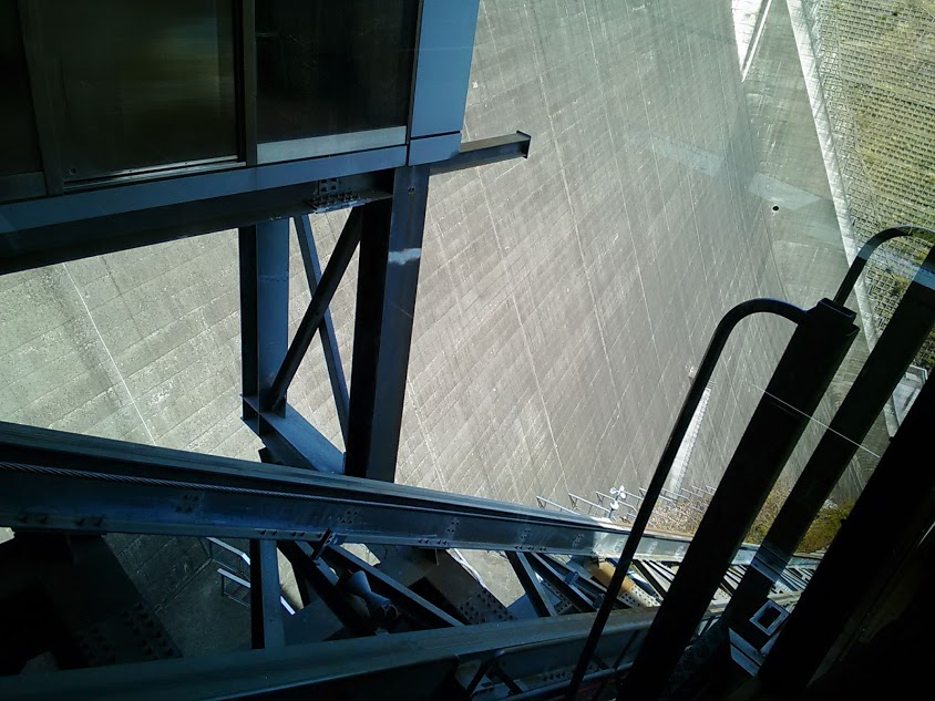 エレベーターは無料ですが、壮大な堰堤を楽しむにはインクラインおすすめです。