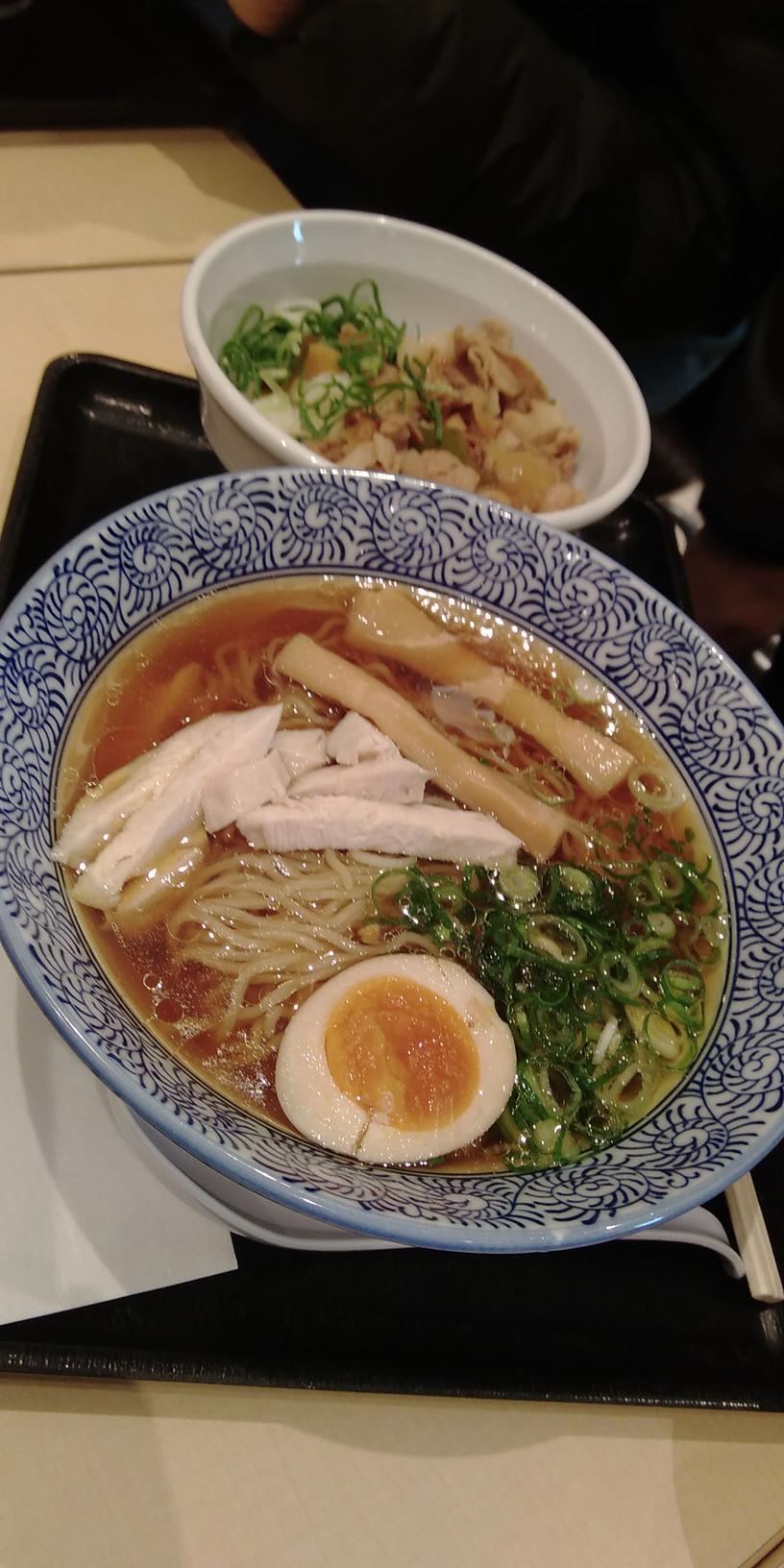 まだ朝9時だったのですべての店舗が開いていないため、メインでオープンしている鶏だし中華そば 百蔵でラーメン定食?!を食べました。